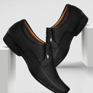 Synthetic Leather Black Formal Office Shoes Slip On For Men (Black)